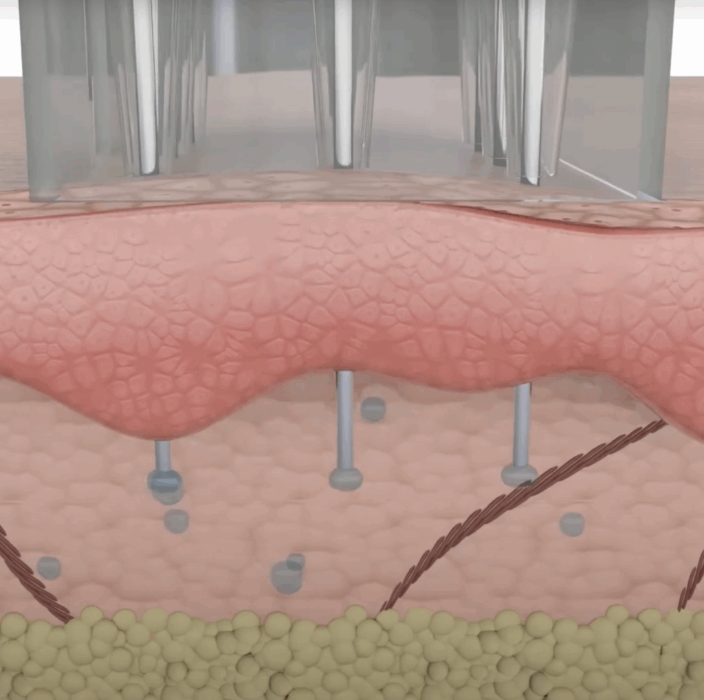 Der Crystal Injector arbeitet mit einer Multi-Nadel-Technologie, die eine sanfte und gleichmäßige Einschleusung der Wirkstoffe ermöglicht.